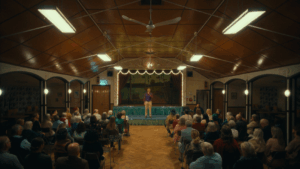 Einem Hellseher wird seine große Séance unterbrochen, weil eine Zuschauerin sich weigert, ihn die Show beenden zu lassen, ohne mit ihrem verstorbenen Ex-Mann sprechen zu können.