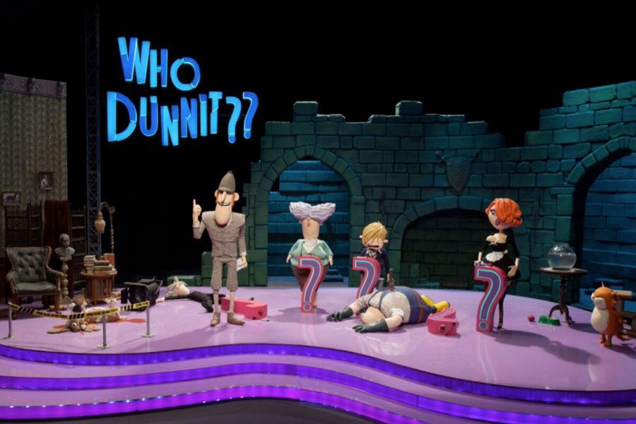 The contestants are also the suspects in the game show 'Whodunnit??'. In this week's show, we have to find out who killed the family dog Buttercup before the murderer strikes again.